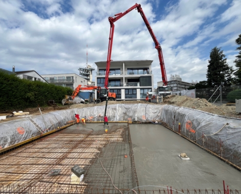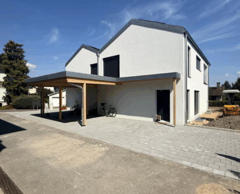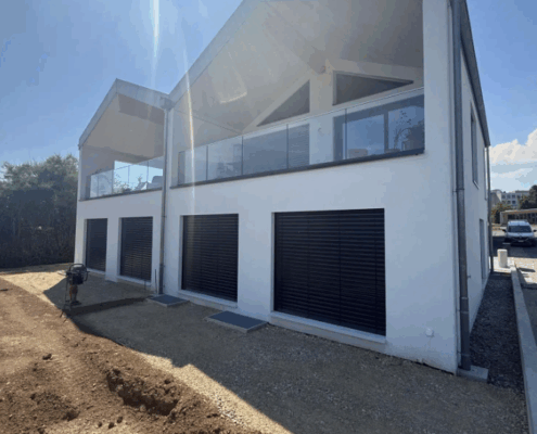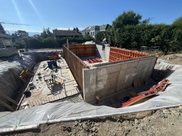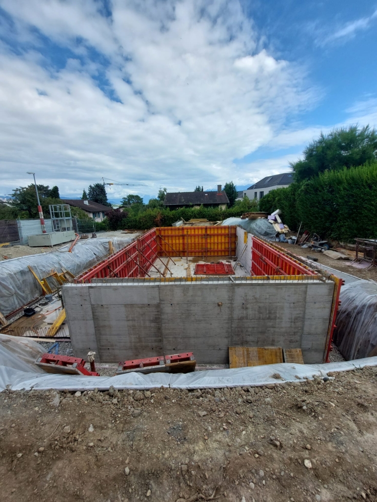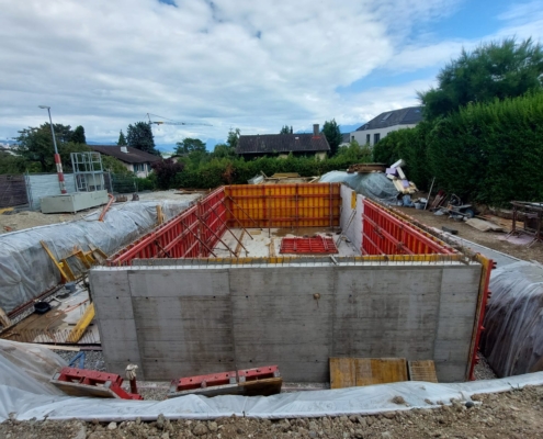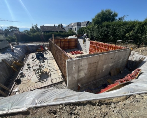 Construction de 2 villas mitoyennes avec la réalisation d’un sous-sol en béton-armé et des aménagements extérieurs.